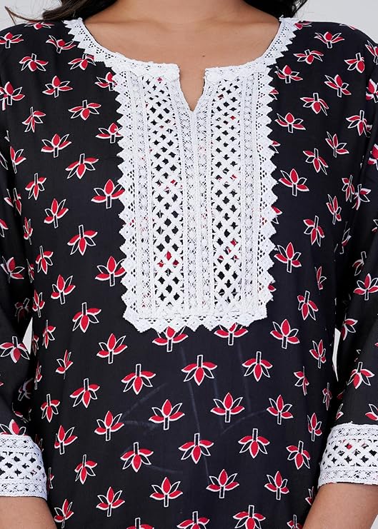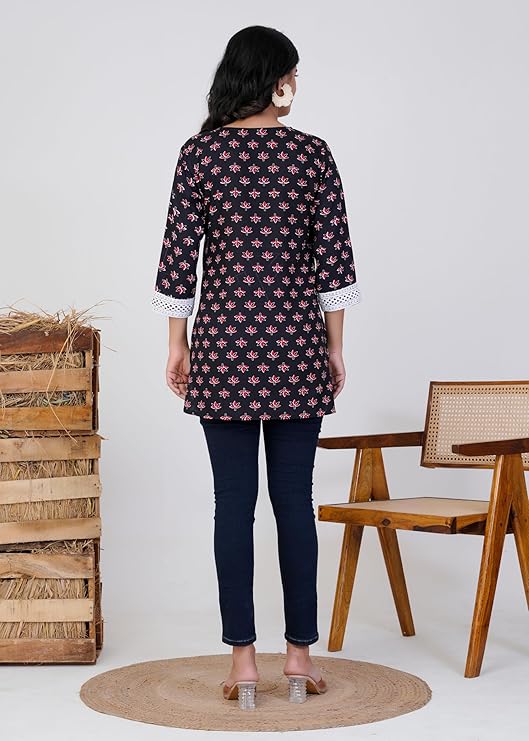 Stylish Women’s Printed Black Short Kurti Trendy Floral & Boho Prints | Soft, Comfy & Perfect