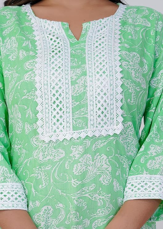 Stylish Women’s Printed Green Short Kurti Trendy Floral & Boho Prints | Soft, Comfy & Perfect